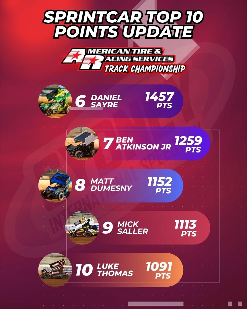 The American Tire & Racing Services Sprintcar Track Championship battle is heating up! Michael Stewart continues to hold the lead, but there’s been some big moves in the standings: